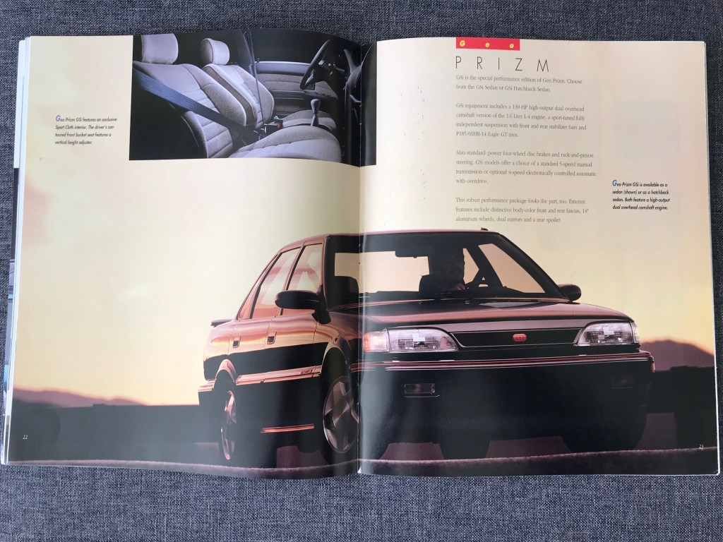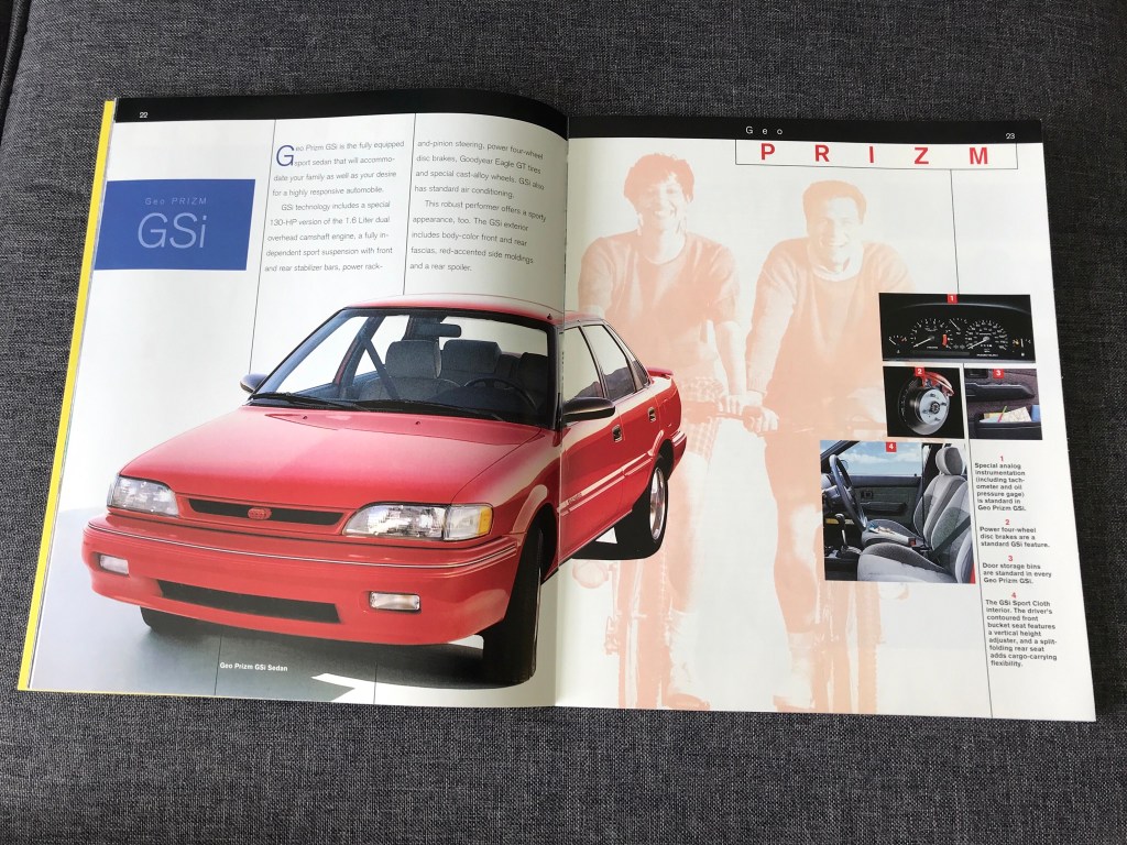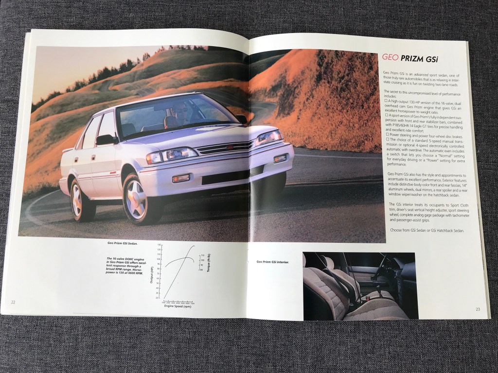 For all model years, the Prizm GSi has the same Toyota-produced 1.6 liter 4-cylinder engine, known variously as the 4A-GE, “Small Port,” or “Red Top.” In GM marketing materials, the GSi engine was referred to as “High Output,” owing to its 28-horsepower bump over the standard models’ 102-horsepower engine.